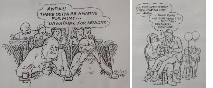 He started out doing sketches related to the speaker’s subjects but soon he found interesting new material in noting how various fellow members were reacting to the challenges of aging.