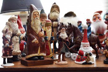 While there are a handful of ornaments from her ancestors, Jan has collected the majority from all over the world from places like England, Germany, and Russia – just to name a few. “There are several ornaments that are over 100 years old,” states Jan. Next to the tree is a collection of Santas, all which have their own story as well. One in particular is from Germany, a hand-carved Belsnickel. “He’s the guy who brings the sticks to the kids that are naughty,” Jan explains.