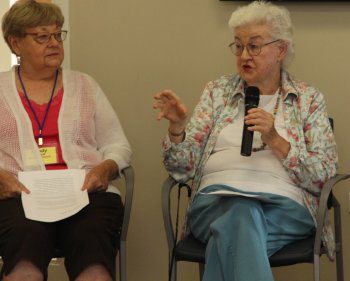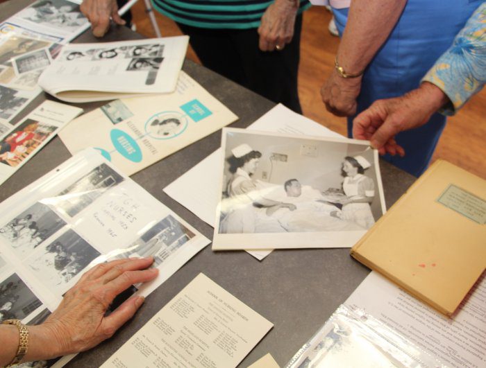 The group also discussed the state of nursing today, referencing changes in work attire, equipment, and compensation. When the panel went to the crowd for questions, audience member Bob Flanigan summed up the thoughts of those in attendance. “I think this panel is a wonderful group of humanity. You have all made significant contributions everywhere you’ve gone.”