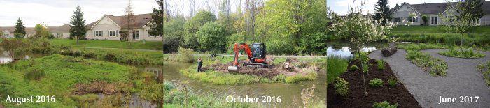 Last spring, longtime St. John’s Meadows resident Art Trimble brought an idea to Paul Bartlett, vice president of senior housing at St. John’s. The concept involved his wish to turn a small peninsula projecting into a pond near the cottage he shared with his partner Barb Binder into a more suitable area for residents and guests to enjoy. An active contributor to the Rochester Civic Garden Center and the Borrows Audubon Nature Club, Art always made it a priority to take the time to appreciate his natural surroundings and share his insights with others. He even offered to fund the initiative.