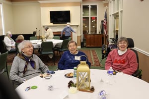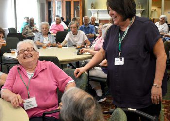 With punch, cookies, and an overflow crowd of residents, Karen Bovee transitioned to her new role as St. John’s Meadows Director of Social Recreation. At the recent “meet and greet,” Karen made her way around from table to table as residents asked questions and chatted amongst one another about upcoming events and outings they would like to see implemented in the near future.