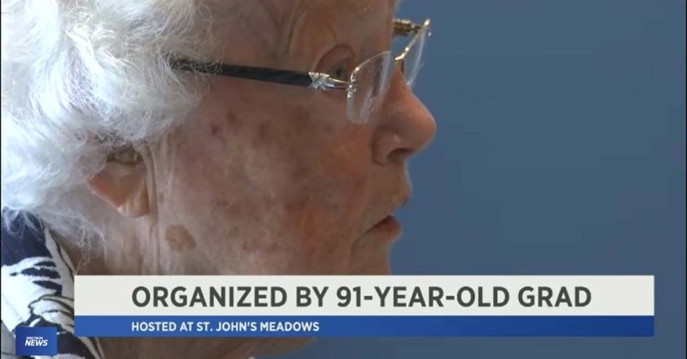 Over the past decade, members of the John Marshall High School Class of 1943 have gathered every year to reminisce about old times. The past few of these annual gatherings have been hosted by St. John’s Meadows, the home of 91-year old resident Virginia Belt. Ever since making the move to St. John’s Meadows, the dining services team has organized and catered the event for Belt and a handful of her classmates.