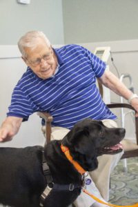 Switching gears mid-week, we had furry visitors shower residents with unconditional love and wet kisses. Bunnies and Miss Parker, the dog, happily allowed our residents to pet and play with them. While bellies were being scratched, natural light poured into the TV room from our attached courtyard. This familiar and comforting interaction with pets left our residents blissfully inspired. Even those residents who might not participate in many activities, are always willing to interact with our favorite Lollypop Farm visitors.