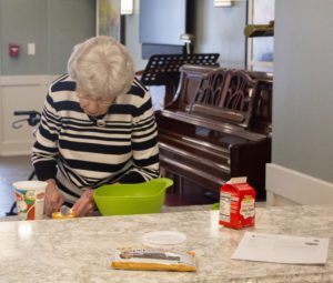 - While waiting for filling to set, get creative with your presentation! We used paper hearts for plate liners and sprinkled powdered sugar, lemon zest, and chocolate chips around the plate. We all eat with our eyes first and residents enjoyed the final display.