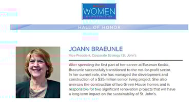 St. John’s Vice President of Corporate Strategy Joanne Braeunle was named to the Women of Distinction list recently released by McKnight’s Senior Living and Long-Term Care News. Joanne was one of just 22 women from across the country to receive the Hall of Honor distinction in 2020.