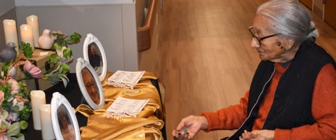 “As a result,” Corcoran says, “this summer all the gravestones were straightened in the St. John’s plot, and a garden was planted and maintained around the main stone.” Corcoran– a St. John’s Meadows resident since March 2022– cited her new neighbor Rev. Raymond Probst for educating her about the plot’s history as well as his previous preservation efforts. “This is an area that Reverend Ray had worked on for so many years,” says Corcoran of the longtime St. John’s Meadows resident and retired St. John’s Chaplain. “It makes him happy to know that I share his love for St. John’s, and I so enjoy his stories of yesteryear,” she says. “He is truly a saint in our midst.”