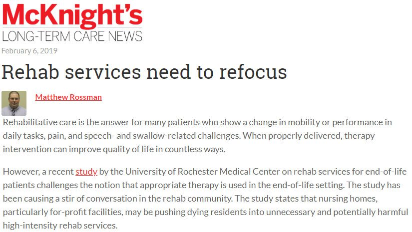 St. John’s Rehabilitation Director Matthew Rossman was highlighted on industry website McKnight’s Lo...